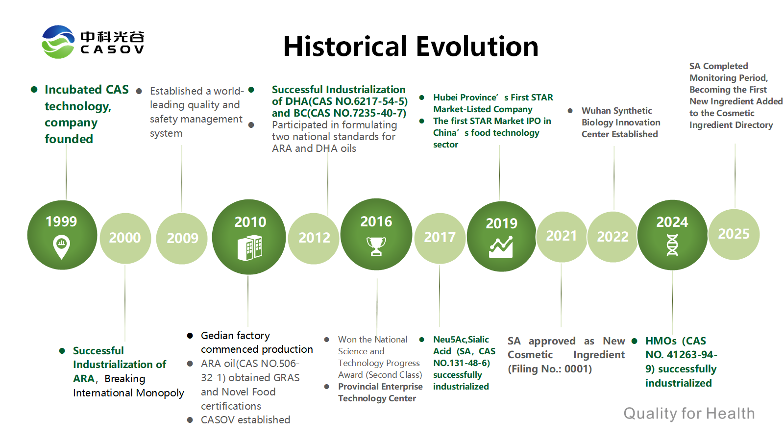 武漢CASOVグリーンバイオテック株式会社は、STAR市場上場企業であるCABIOグループ(証券コード:688089)の完全子会社であり、中国科学院の技術資源と最新の研究開発システムを活用し、バイオ発酵、機能性成分の開発、およびその応用に注力しています。2014年10月に「国家ハイテク企業」に認定された同社は、湖北省産業技術革新バイオエンジニアリングセンターおよび中国科学院生物育種センターの管理主体として機能し、中国科学院合肥物質科学研究所の上級研究チームと緊密な連携を維持しながら、継続的な技術革新を推進しています。